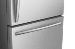 This 22.3 cu. ft. bottom-freezer refrigerator in stainless steel offers a spacious design with convenient storage options. Featuring adjustable shelves, a large freezer drawer, and humidity-controlled crispers, it keeps food fresh and organized. The sleek stainless steel finish adds a modern touch to any kitchen.