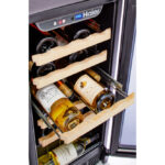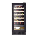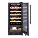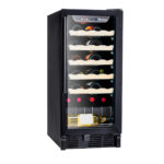 The 26-bottle wine cellar offers a stylish and practical solution for wine storage. Featuring an LED electronic control display, it allows you to easily set the ideal temperature for both red and white wines. The single cooling zone with adjustable electronic control and compressor-based cooling ensures consistent performance. Glide-out, wood-trimmed racks make bottle access easy while enhancing label visibility. Interior lighting softly illuminates your collection, and the see-through door with a pro-style handle adds a sleek, modern touch. Compact yet spacious, it fits well into various spaces with dimensions of 14 7/8″ in width, 22 1/8″ in depth, and 34 1/4″ in height. Built for durability, it includes a 1-year parts and labor warranty, making it a reliable and attractive choice for any wine enthusiast.