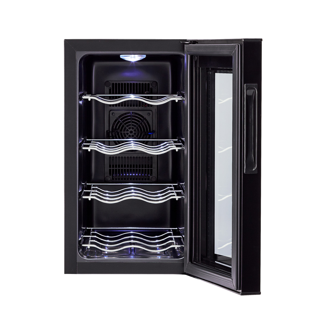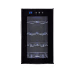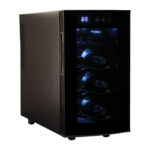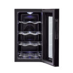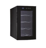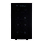 This 8-bottle wine cellar combines sleek design with advanced thermoelectric cooling technology, providing the ideal storage for your wine collection. The vibration-free, ultra-quiet system ensures your wine remains at the perfect temperature without the noise of traditional cooling methods. The adjustable LED electronic control display allows you to set the temperature between 46–66°F, making it perfect for both red and white wines. The soft interior lighting enhances visibility, helping you organize and view your collection with ease. With four full-width chrome wine storage racks, this wine cellar securely holds up to 8 bottles. Its compact size makes it ideal for countertop use, adding an elegant touch to any kitchen, bar, or small space. Quiet, stylish, and efficient, this wine cellar ensures optimal conditions for your wine collection.