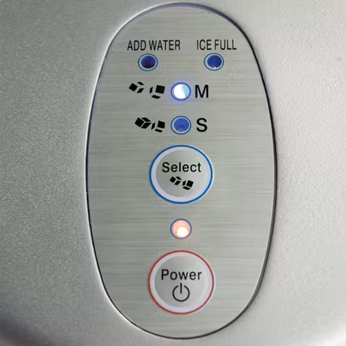 - Indicator Lights: Includes LED lights for Power On/Off, Add Water, and Ice Bucket Full.